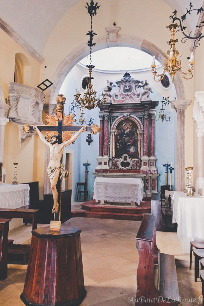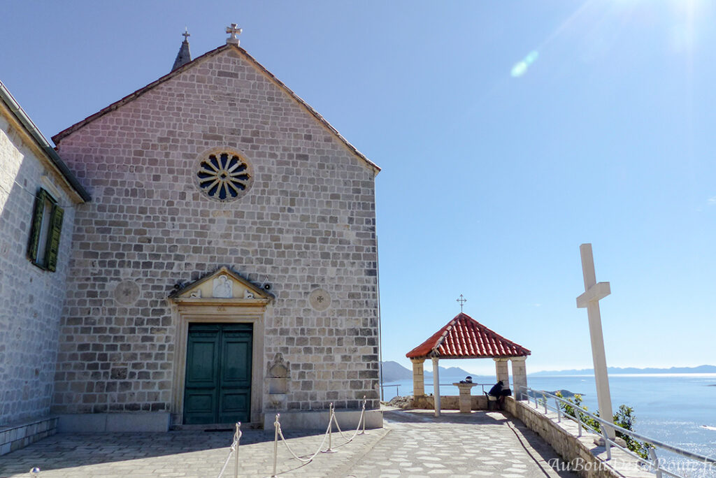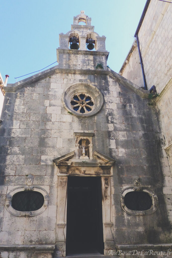 Le ferry d’Orebić permet de se rendre sur Korčula en voiture en une trentaine de minutes. Les liaisons en haute saison sont nombreuses, ce qui est plutôt pratique. Nous arrivons avec une quarantaine de minutes en avance, donc après avoir pris le billet, nous reprenons la voiture pour monter au monastère franciscain Notre-Dame des Anges. Perché sur un éperon rocheux qui domine le village, ce monastère fondé au 15e siècle était un repère pour les marins. Orebić était à l’époque un comptoir commercial important aux grandes heures de la République de Dubrovnik. Depuis la terrasse du monastère, la vue sur la mer et l’île de Korčula en face est magnifique.