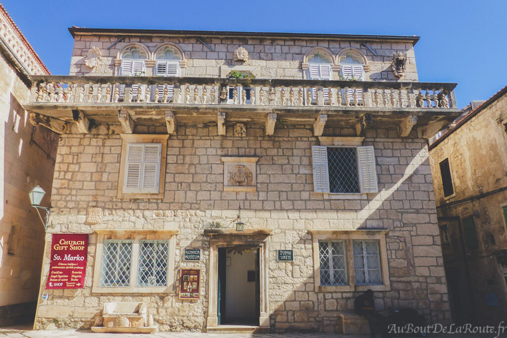 Ne manquez pas également la somptueuse cathédrale Saint-Marc datant du 15e siècle, éclatante avec ses pierres blanches, dont nous réalisons une visite rapide. La pierre de Korčula et des îlots environnants était utilisée par les maîtres tailleurs pour l’édification des nombreux monuments du littoral Dalmate. A côté de la cathédrale, on trouve l’ancien palais des évêques, reconverti en musée du Trésor exposant de rares objets d’art. Dans une rue adjacente, on trouve la maison supposée de Marco Polo qui vécu au 13e siècle. Bien qu’à priori admis qu’il soit né à Venise, d’autres sources suggéreraient qu’il soit né dans la ville de Korčula.