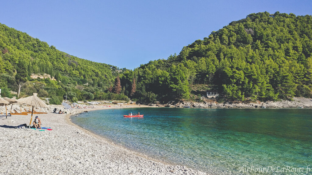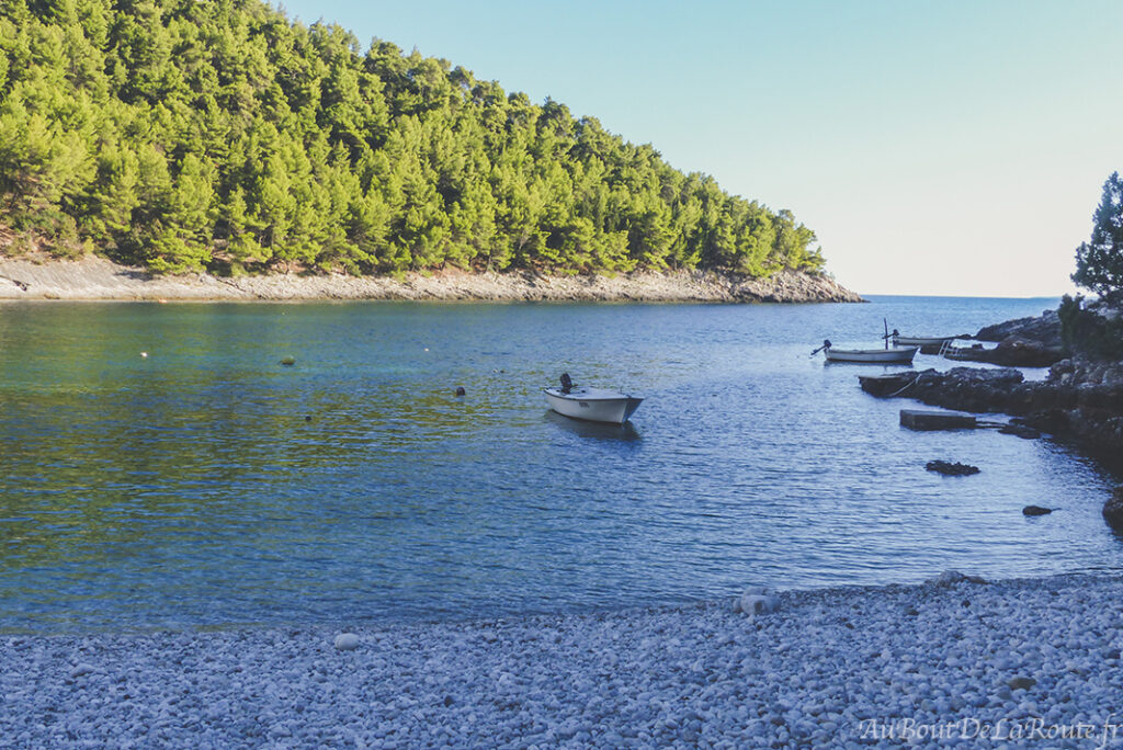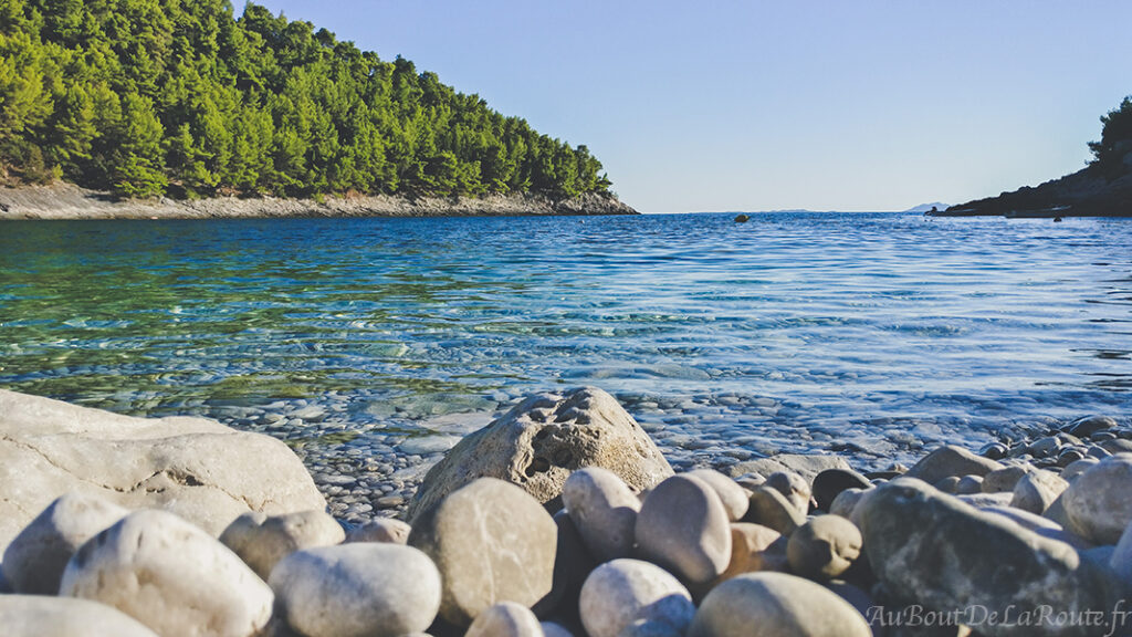 La route qui descend à l’une des plus belles plage de l’île, Pupnatska Luka, est étroite et tortueuse. Arrivés en surplomb de la plage, il faut se garer le long de la route, qui est dorénavant une zone payante. Lorsque nous y étions, la plage était encore peu connue et le stationnement non payant. Mais, elle doit être victime de son succès, on y trouve d’ailleurs un restaurant et un bar. Ce jour-là dans tous les cas, nous avons pu profiter de cette magnifique plage aux eaux turquoises et aux galets blancs, sans trop de monde.