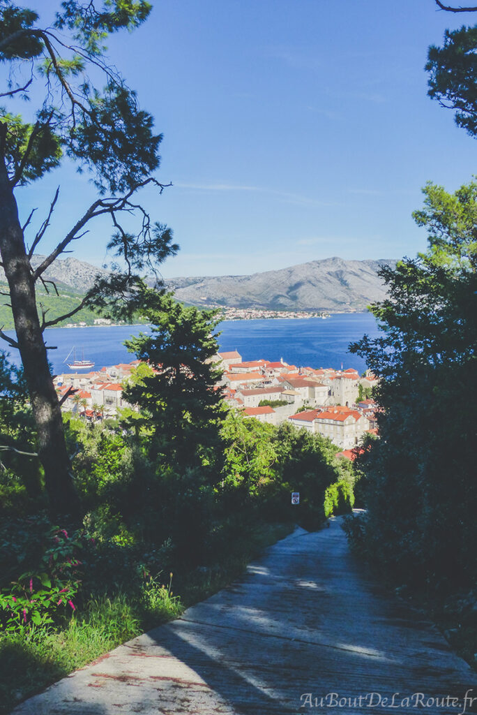 Nous sortons ensuite de la cité médiévale pour traverser les faubourgs ouest et grimper sur le flanc de la colline, à travers les pins, pour avoir un dernier et magnifique panorama sur la ville et la péninsule de Pelješac, avant de rejoindre le parking et de reprendre la route.