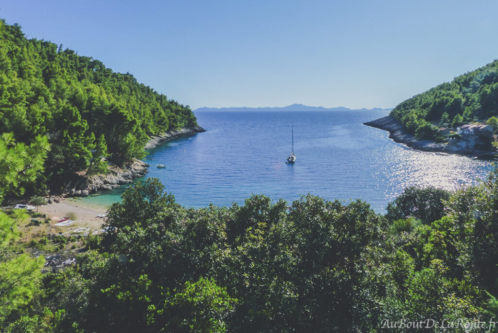 Il serait vraiment dommage de s’arrêter à la cité médiévale, bien que très belle, lors de la visite de l’île de Korčula. Si vous êtes véhiculés, nous ne pouvons que vous conseiller de prendre les routes qui la traversent, à la découverte des plages et recoins sauvages de l’île. Nous prenons la route en direction du village de Pupnat, la route grimpe sur la crête de la montagne et traverse une grande forêt de pins.